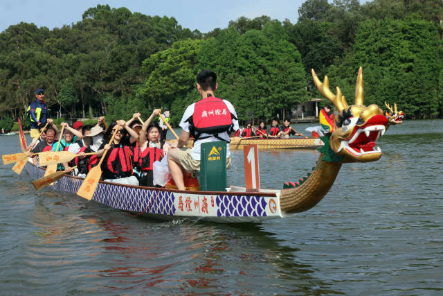 “1、2、3!”“咚咚咚”……彩龍競渡破浪劃行,鏗鏘有力的喊號聲、擊鼓聲在越秀區(qū)秀美的麓湖上回蕩?!皡⒓育堉刍顒樱杏X很震撼,這是一項非常具有傳統(tǒng)意義的活動,希望未來能和同伴們一起分享這份美好,也想要用龍舟精神激勵即將走向?qū)嵙?xí)崗位走向社會的自己?!边@是參加“香港實習(xí)計劃”的王同學(xué)參加完龍舟競渡活動后的感言。