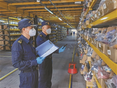 廣州海關所屬南沙海關關員在跨境電商倉庫開展巡倉監管