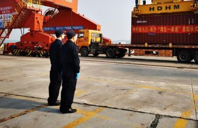 廣州海關所屬佛山海關駐南海辦事處關員對以“灣區一港通”模式出口的貨物進行監管