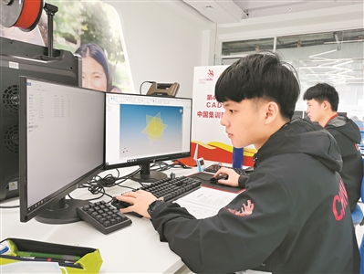 選手專心致志地完成產(chǎn)品核心零部件設(shè)計(jì)。