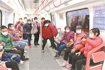 佛山地鐵2號線上,乘客紛紛拍照留念。