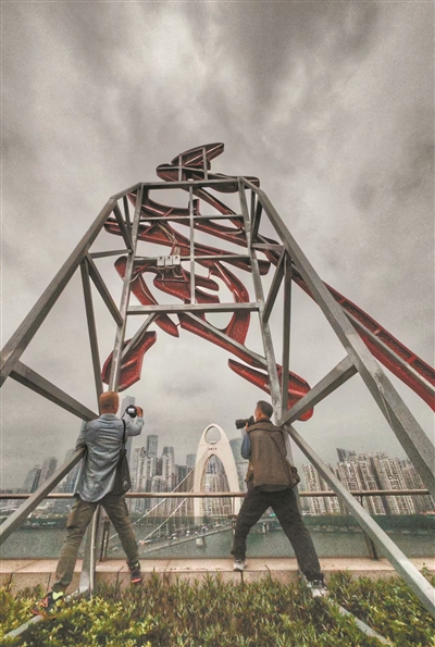 兩位攝影家在廣報(bào)中心拍攝江景。