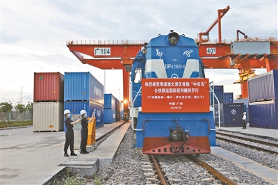 7月4日凌晨5時,隨著一聲汽笛長鳴,一列滿載辦公家具、空調、小家電等粵港澳大灣區名優特色產品的“中吉烏”國際班列緩緩從廣鐵集團廣州國際港駛出。至此,粵港澳大灣區國際班列通道已達18條。