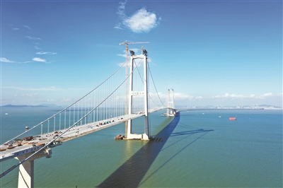 深中通道為粵港澳大灣區核心樞紐工程,全長24公里,其中橋梁工程長約17.2公里。中山大橋是項目關鍵控制性工程之一,為主跨580米的雙塔斜拉橋,主塔高213.5米,由120根斜拉索連接主塔與橋面,如“豎琴”躍于海面。作為橫跨珠江口岸的又一超級工程,深中通道通車后,將極大縮短珠江口東西兩岸城市間的距離,作為連接“深莞惠”與“珠中江”之間唯一的公路直連通道,深中通道將深圳至中山約2小時的車程縮短為30分鐘。