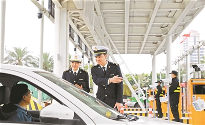 橫琴大橋“二線”通道出島通勤車輛駛入查驗場。
