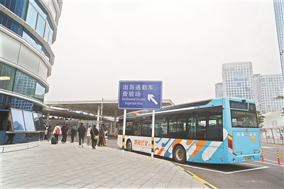 記者體驗乘坐公交車出島,首先步行穿過出島大廳,隨后登上一輛公交車,車輛經琴海東路進入“二線”通道時遇上抽檢,所有乘客下車,攜帶行李物品步行經出島大廳至“大橋二線通道北”站,再次乘車出島。如果攜帶了需向海關申報的物品怎么處理?橫琴海關科長郭克野說,乘客可步行進入出島旅檢大廳申報。如果因抽檢而誤車,可以在“大橋二線通道北”站免費便捷換乘。