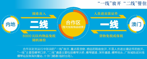 今后,內地貨物進入橫琴視同出口,按規定實行增值稅和消費稅退稅,澳門貨物經“一線”進入合作區免稅,旅客從“二線”進入內地攜帶不超過8000元人民幣物品免稅。