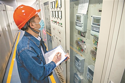 碳排放管理員在廠房內(nèi)抄錄數(shù)據(jù)
