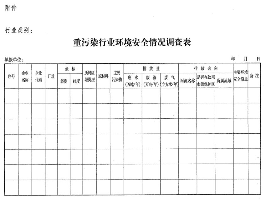 附件:重污染行業(yè)環(huán)境安全情況調(diào)查表