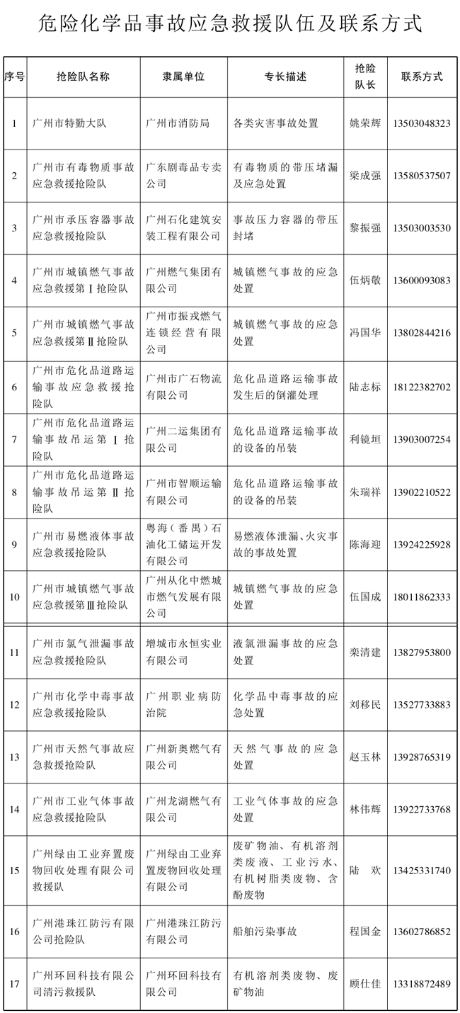 (17)廣州供電局有限公司:負責指導、協調危險化學品事故應急救援所需的電力保障工作。