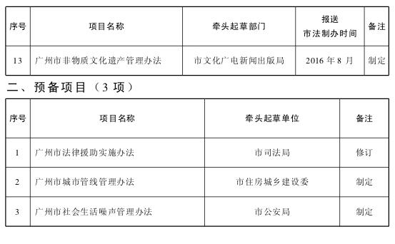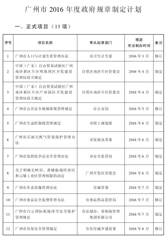 廣州市人民政府辦公廳關(guān)于印發(fā)廣州市2016年度政府規(guī)章制定計(jì)劃的通知