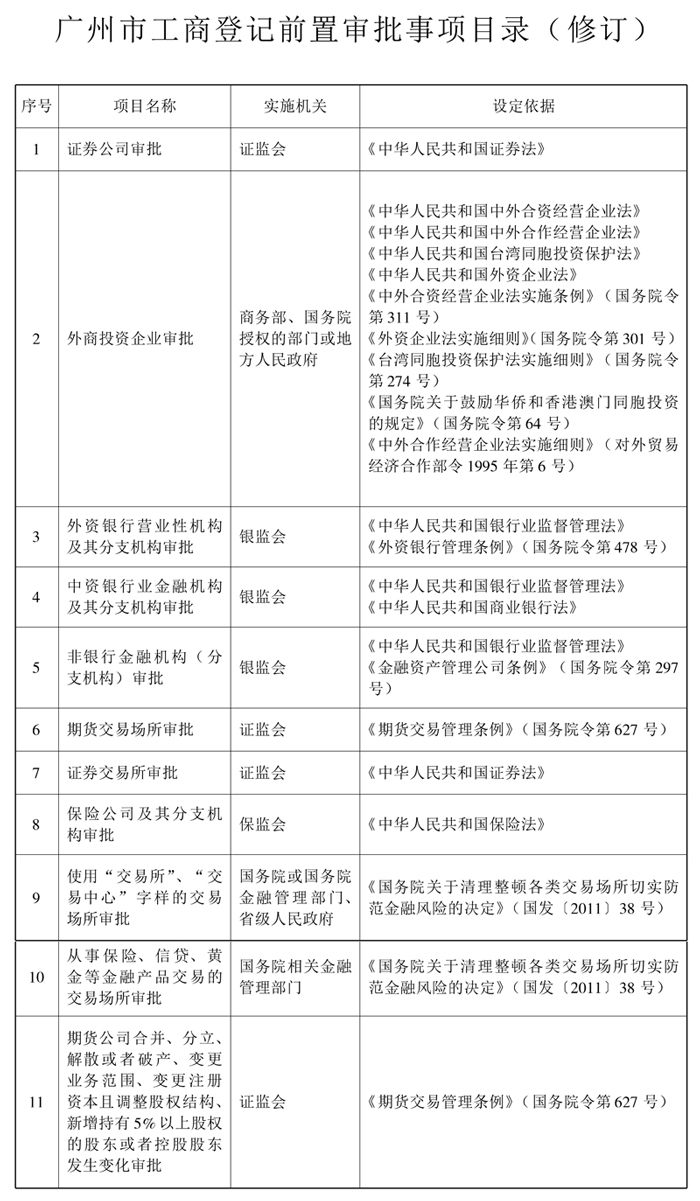 廣州市人民政府辦公廳關(guān)于印發(fā)廣州市工商登記前置審批事項(xiàng)目錄的通知