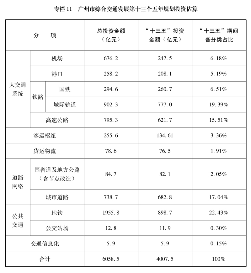 廣州市綜合交通發展第十三個五年規劃