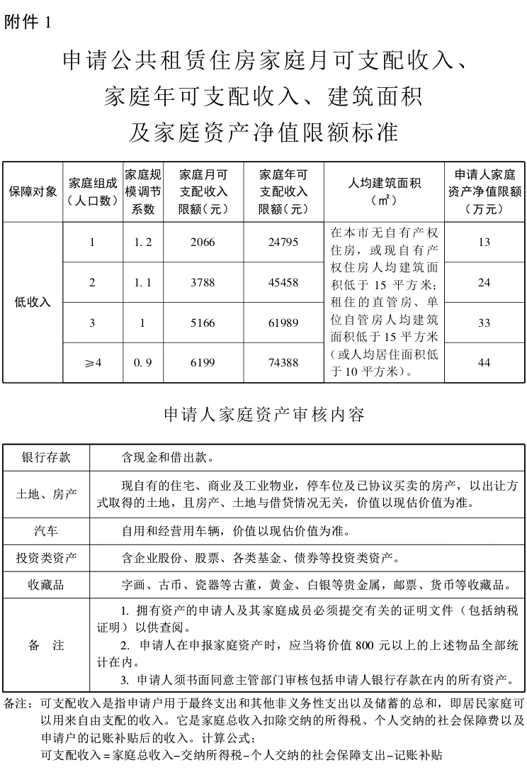 附件:1.申請公共租賃住房家庭月可支配收入、家庭年可支配收入、建筑面積及家庭資產(chǎn)凈值限額標準