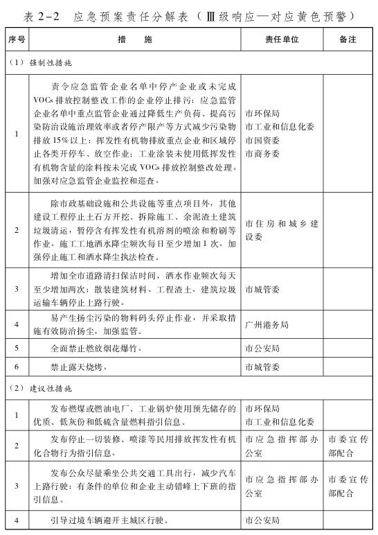 (6)提請(qǐng)區(qū)域聯(lián)動(dòng)。向省政府報(bào)告廣州市應(yīng)對(duì)環(huán)境空氣重污染的Ⅲ級(jí)應(yīng)急響應(yīng)情況,并提請(qǐng)省協(xié)調(diào)相關(guān)城市協(xié)同減排,減少區(qū)域污染。
