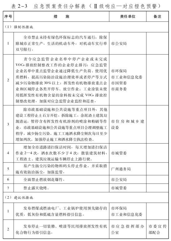 (7)提請(qǐng)區(qū)域聯(lián)動(dòng)。向省政府報(bào)告廣州市應(yīng)對(duì)環(huán)境空氣重污染的Ⅱ級(jí)應(yīng)急響應(yīng)情況,并提請(qǐng)省協(xié)調(diào)相關(guān)城市協(xié)同減排,減少區(qū)域污染。