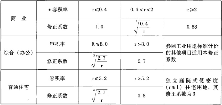 2.新建項目(工業項目除外)土地出讓金容積率修正系數表