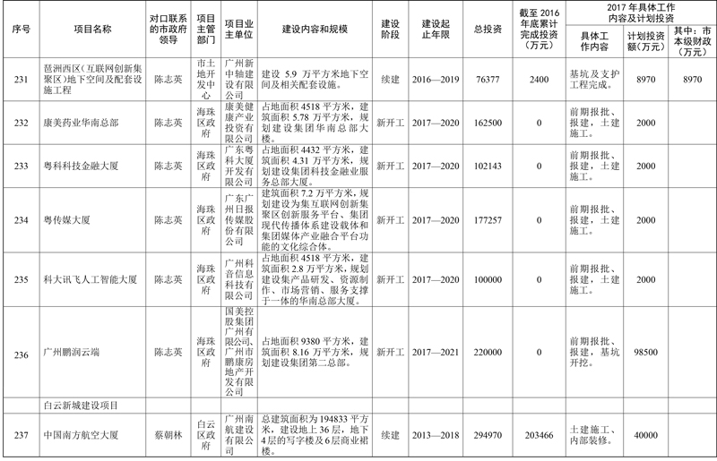 廣州市人民政府辦公廳關(guān)于印發(fā)市政府領(lǐng)導(dǎo)對口聯(lián)系重點(diǎn)項(xiàng)目工作機(jī)制和2017年市重點(diǎn)項(xiàng)目市政府領(lǐng)導(dǎo)分工方案的通知