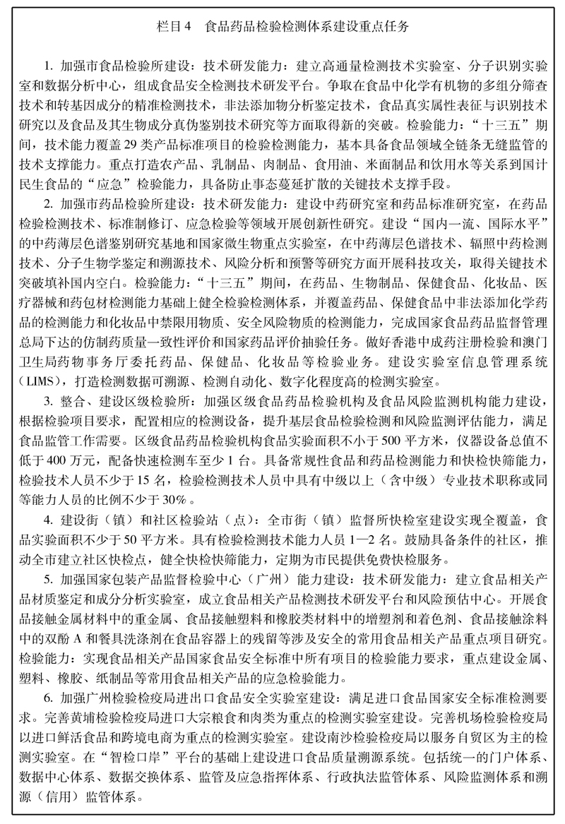 ——檢測體系更加權威。加強檢驗檢測體系建設,廣州市食品檢驗所和廣州市藥品檢驗所建設成區域性國家級食品藥品檢測重點實驗室。到2020年末,國家授權品種的獨立全項檢驗能力達到100%。