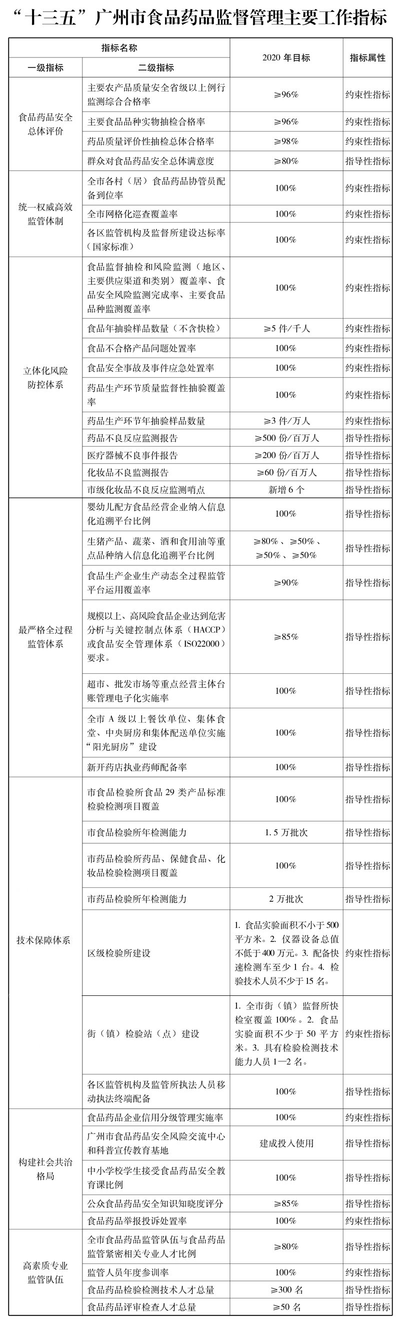 附件:1.“十三五”廣州市食品藥品監督管理主要工作指標