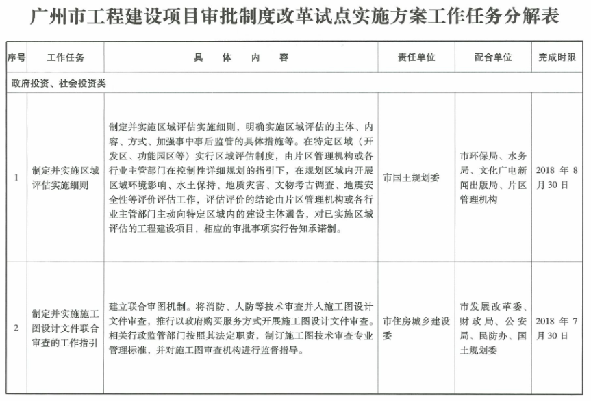 附件:廣州市工程建設項目審批制度改革試點實施方案工作