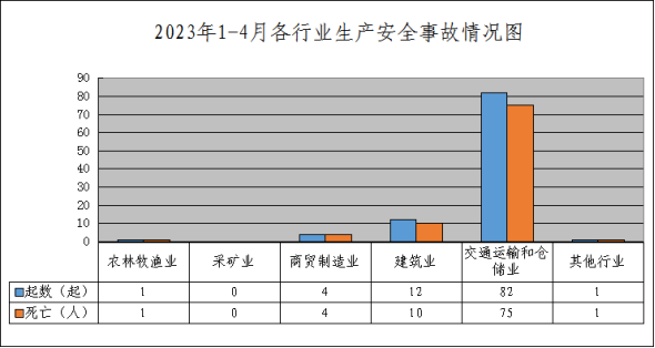 據統計,1-4月,全市共發生各類生產安全事故(以下簡稱“事故”)100起、死亡91人、受傷32人,同比分別下降11.5%、3.2%、31.9%。未發生較大及以上事故。