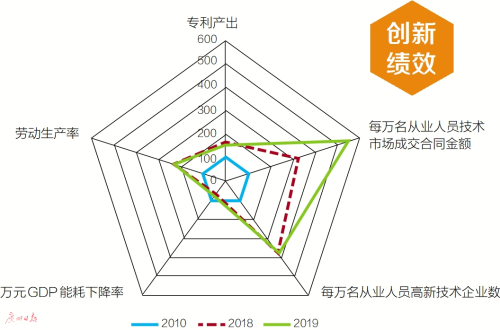 創新指數測算結果顯示,2010-2019年,廣州創新指數年均增長10.86%,清晰地勾勒出“十三五”期間城市創新能力的“上揚曲線”。