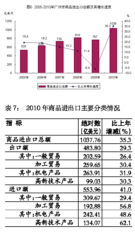 商品進出口較快增長。全年商品進出口總額1037.76億美元,增長35.3%。其中,商品出口總額483.8億美元,增長29.3%;商品進口總額553.96億美元,增長41.0%。外商及港澳臺投資企業出口285.26億美元,增長27.1%,占全市商品出口總值的59.0%;國有企業出口97.23億美元,增長27.9%;集體企業出口5.34億美元,增長14.7%;私營企業出口93.97億美元,增長39.1%。