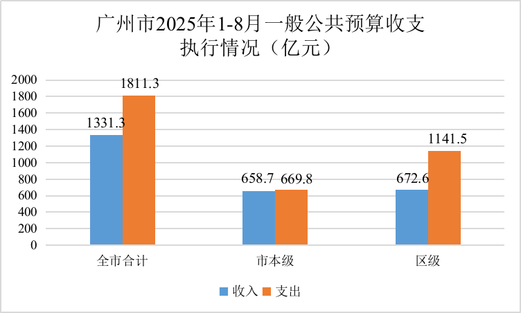 1-8月,全市一般公共預(yù)算收入1,331.3億元,同比增長2.5%。其中:市本級(jí)一般公共預(yù)算收入658.7億元,同比增長1.3%;區(qū)級(jí)一般公共預(yù)算收入672.6億元,同比增長3.6%。
