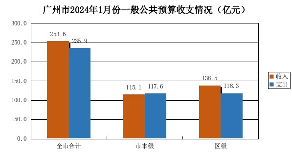 1月份,全市一般公共預算收入253.6億元,同比增長1.3%。其中:市本級收入115.1億元,同比下降6.3%;區級收入138.5億元,同比增長8.5%。