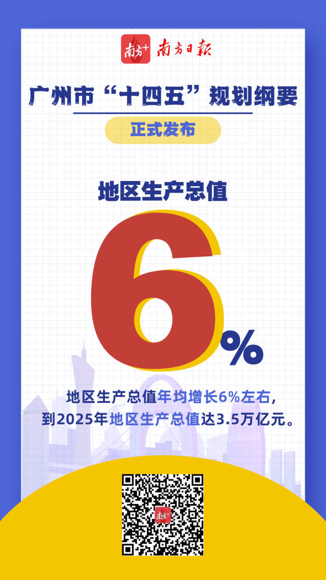 “十四五”時期,廣州經(jīng)濟年均增長6%左右,到2025年地區(qū)生產(chǎn)總值達3.5萬億元。