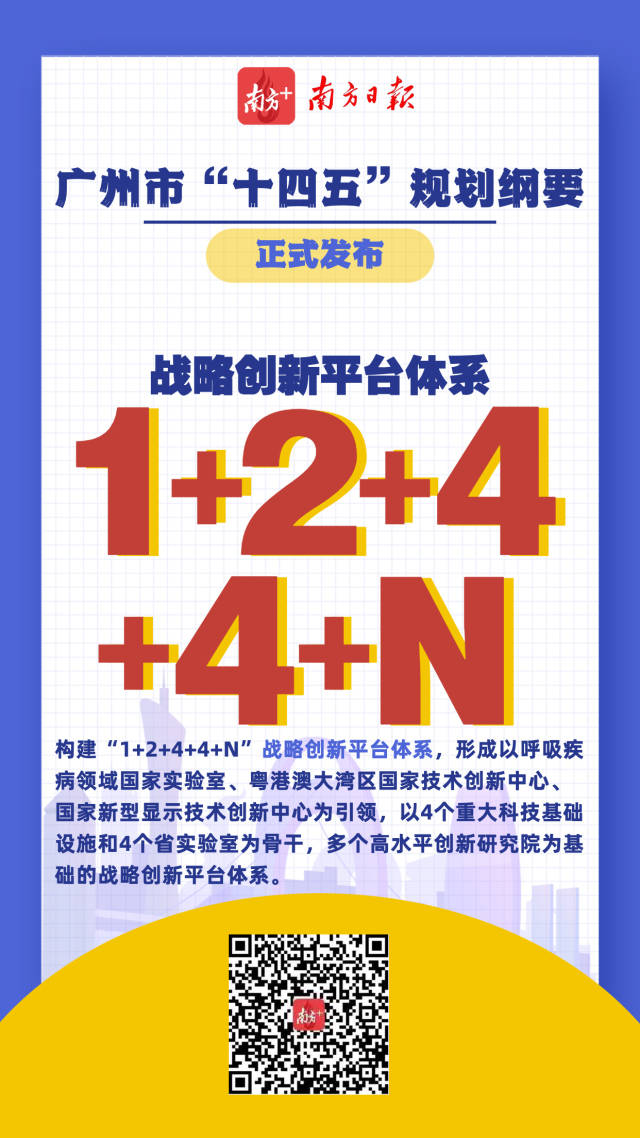 一方面,廣州要構(gòu)建“1+2+4+4+N”戰(zhàn)略創(chuàng)新平臺體系,形成以呼吸疾病領(lǐng)域國家實驗室、粵港澳大灣區(qū)國家技術(shù)創(chuàng)新中心、國家新型顯示技術(shù)創(chuàng)新中心為引領(lǐng),以4個重大科技基礎(chǔ)設(shè)施和4個省實驗室為骨干,多個高水平創(chuàng)新研究院為基礎(chǔ)的戰(zhàn)略創(chuàng)新平臺體系。