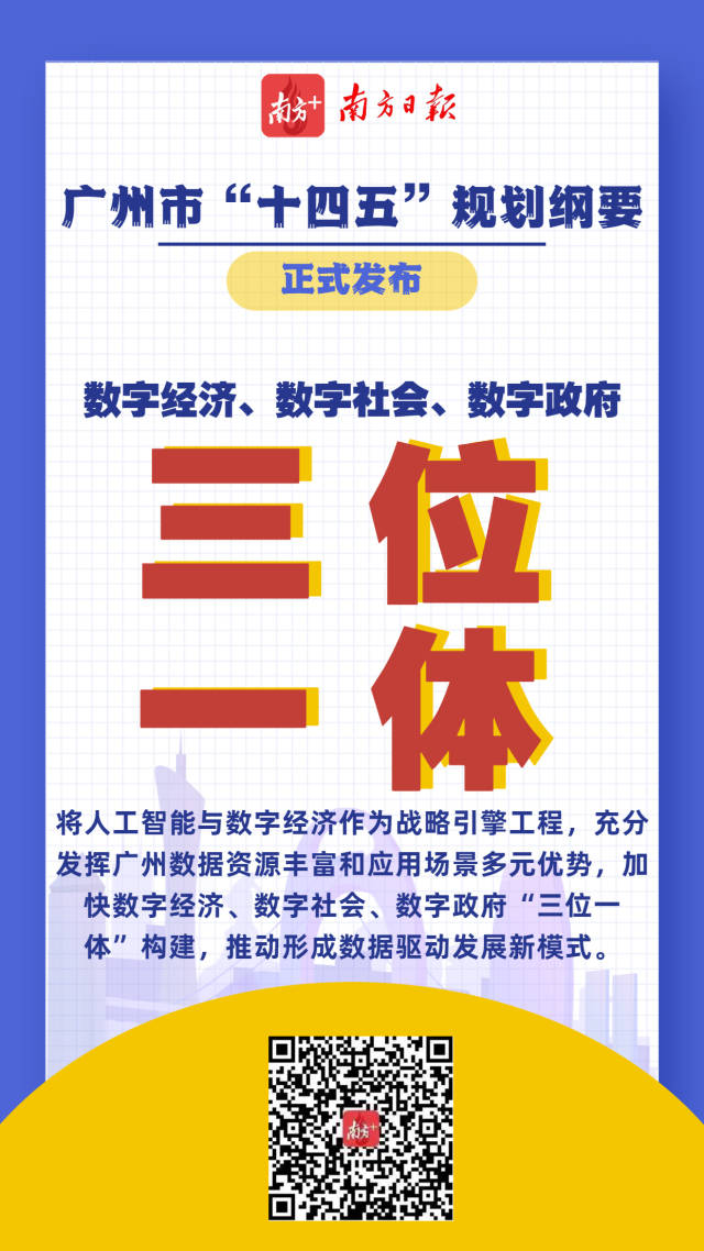 《綱要》提出,將人工智能與數(shù)字經(jīng)濟作為戰(zhàn)略引擎工程,充分發(fā)揮廣州數(shù)據(jù)資源豐富和應(yīng)用場景多元優(yōu)勢,加快數(shù)字經(jīng)濟、數(shù)字社會、數(shù)字政府“三位一體”構(gòu)建,推動形成數(shù)據(jù)驅(qū)動發(fā)展新模式。