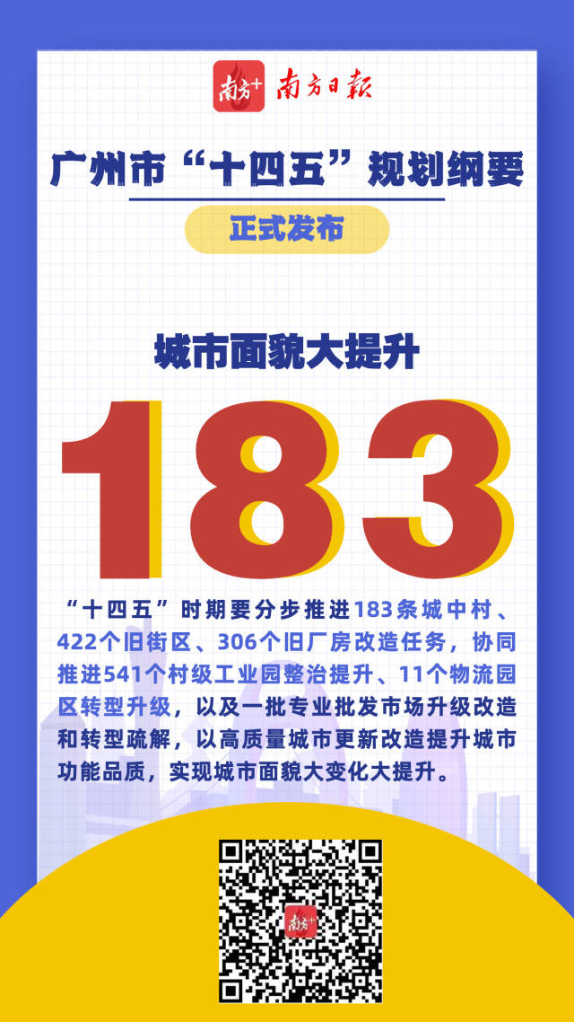 “十四五”時期,廣州要分步推進183條城中村、422個舊街區(qū)、306個舊廠房改造任務(wù),協(xié)同推進541個村級工業(yè)園整治提升、11個物流園區(qū)轉(zhuǎn)型升級,以及一批專業(yè)批發(fā)市場升級改造和轉(zhuǎn)型疏解,以高質(zhì)量城市更新改造提升城市功能品質(zhì),實現(xiàn)城市面貌大變化大提升。