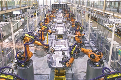 廣州番禺智能新能源汽車產業園里的廣汽埃安焊接車間