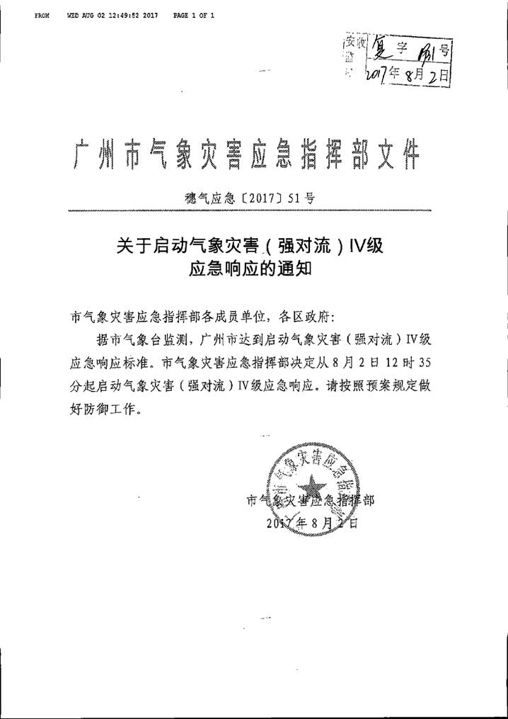 轉(zhuǎn)發(fā)關(guān)于啟動氣象災(zāi)害(強(qiáng)對流)Ⅳ級應(yīng)急響應(yīng)的通知