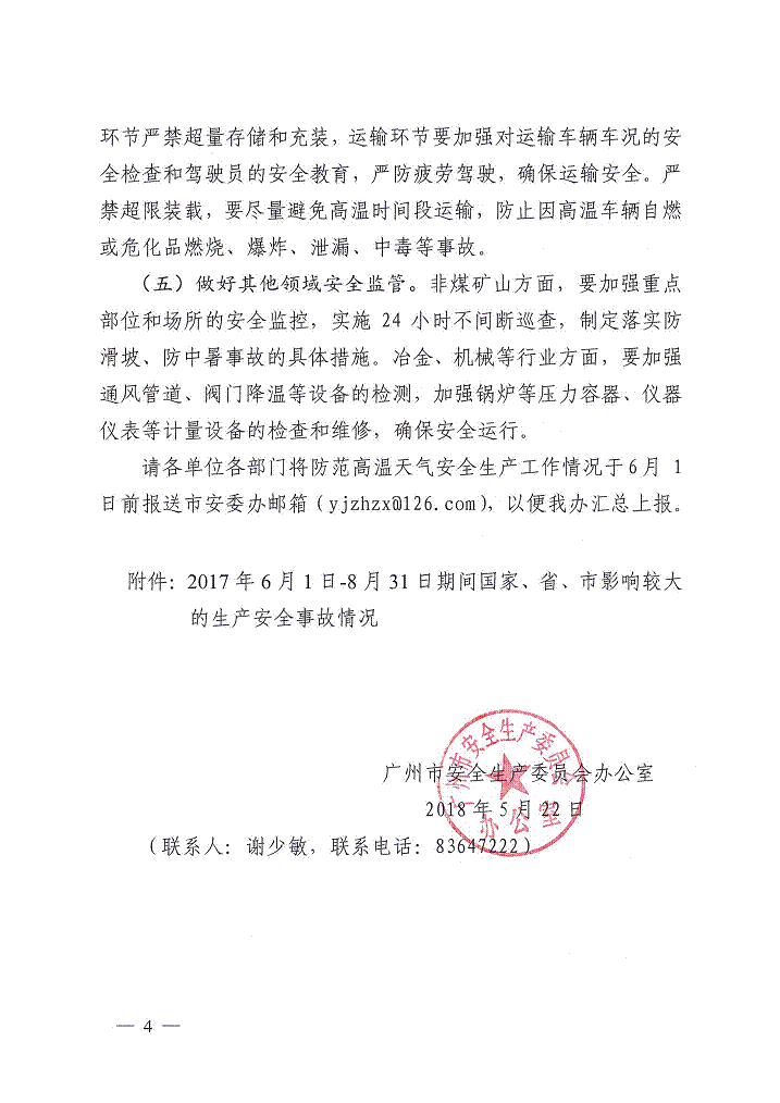 廣州市安全生產委員會辦公室關于切實做好高溫天氣安全生產預警預防工作的通知