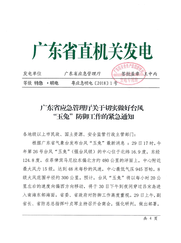 轉發廣東省應急管理廳關于切實做好臺風“玉兔”防御工作的緊急通知 請各單位做好防御準備