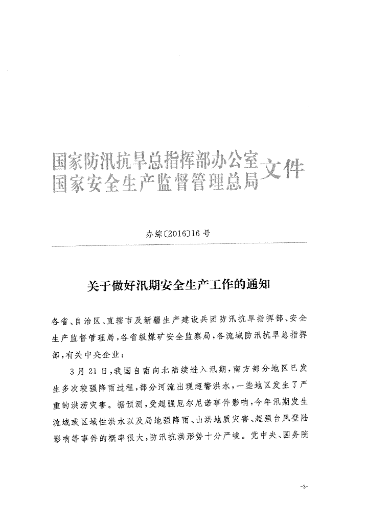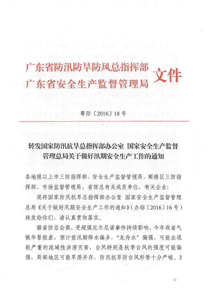 轉發國家防汛抗旱總指揮部辦公室 國家安全生產監督管理總局關于做好汛期安全生產工作的通知