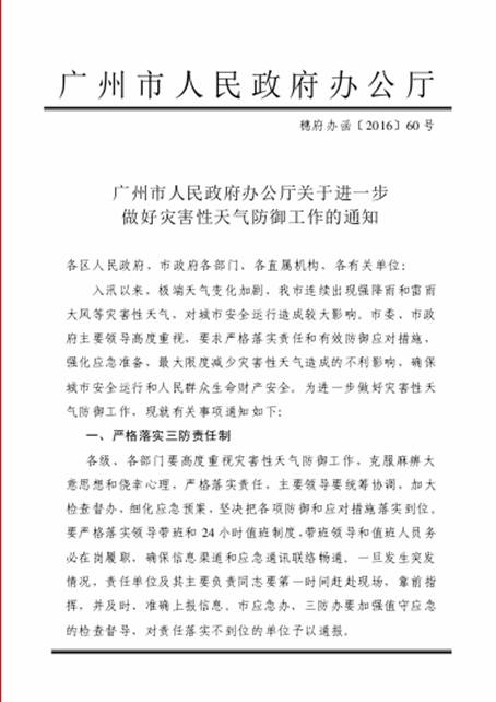 轉發(fā)廣州市人民政府辦公廳關于進一步做好災害性天氣防御工作的通知