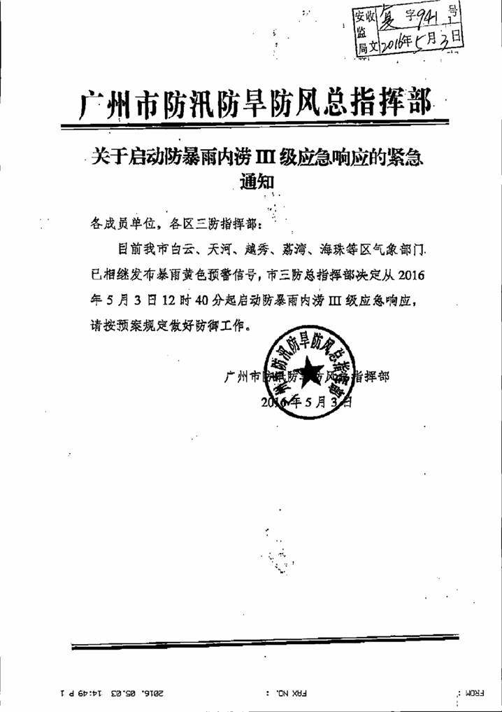 轉發關于啟動防暴雨內澇Ⅲ級應急響應的緊急通知