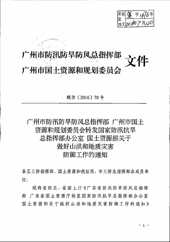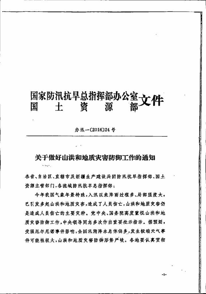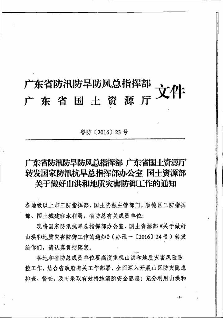 轉發國家防汛抗旱總指揮部辦公室 國土資源部關于做好山洪和地質災害防御工作的通知