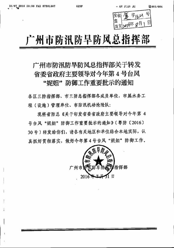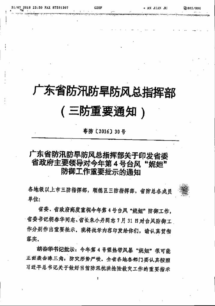 轉(zhuǎn)發(fā)省委省政府主要領(lǐng)導(dǎo)對(duì)今年第4號(hào)臺(tái)風(fēng)“妮妲”防御工作重要批示的通知