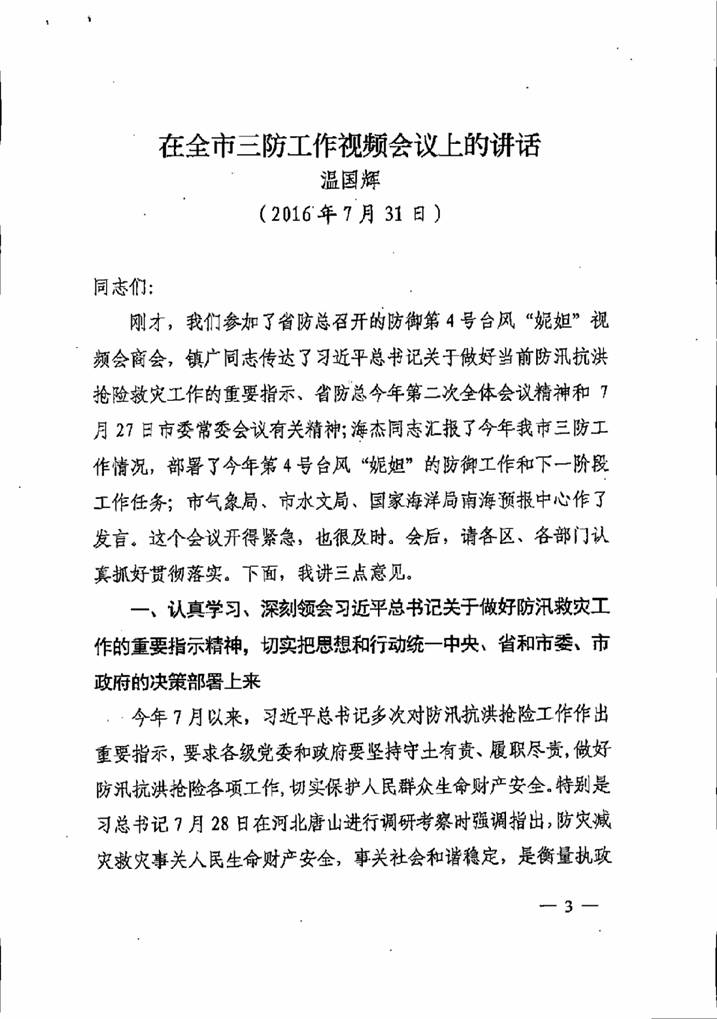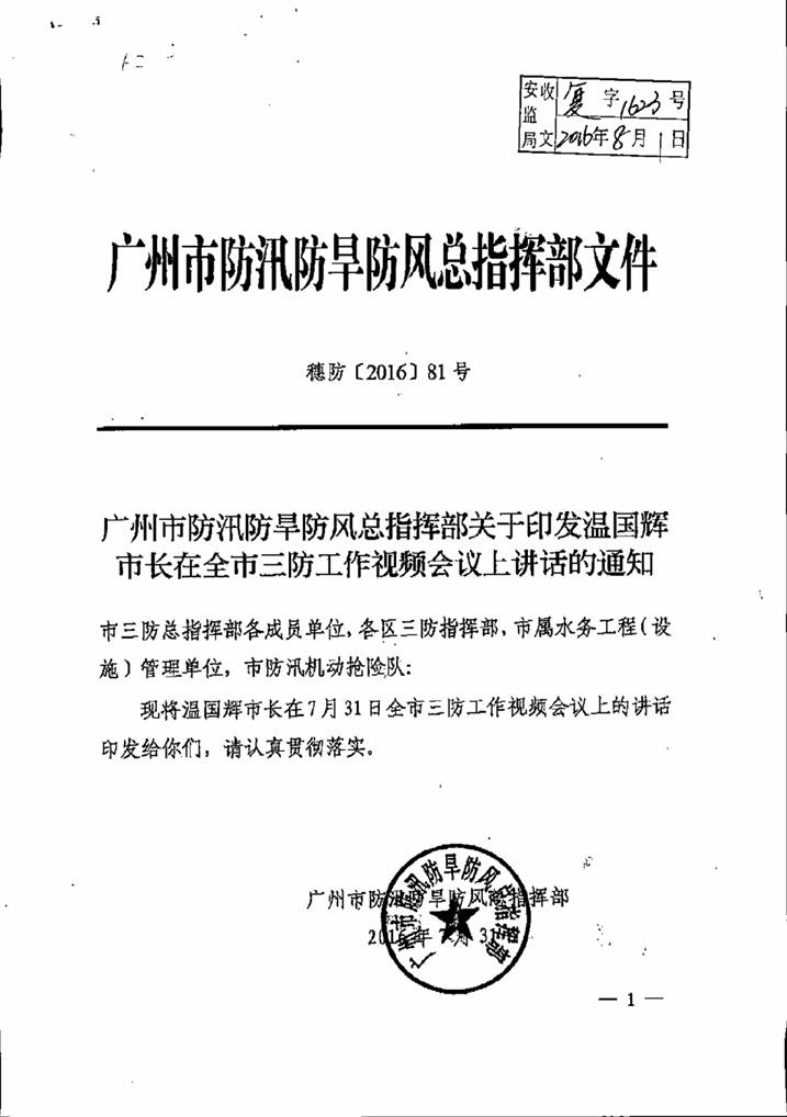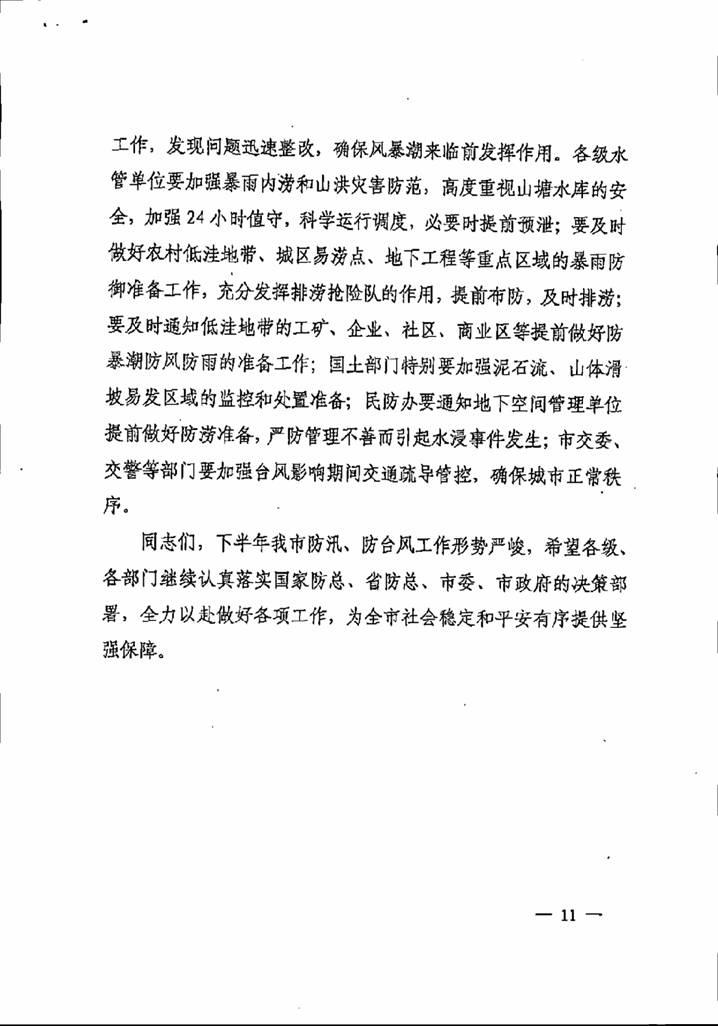 轉(zhuǎn)發(fā)市三防辦關(guān)于印發(fā)溫國(guó)輝市長(zhǎng)在全市三防工作視頻會(huì)議上講話的通知