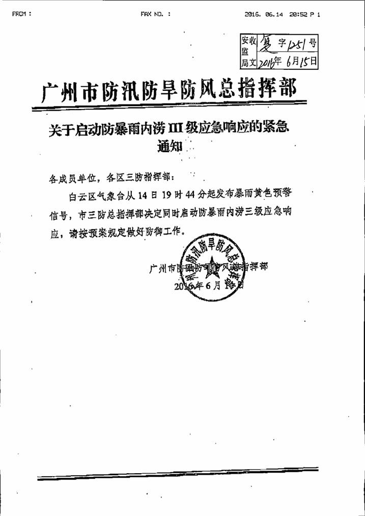 轉發關于啟動防暴雨內澇Ⅲ級應急響應的緊急通知