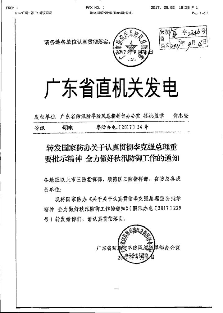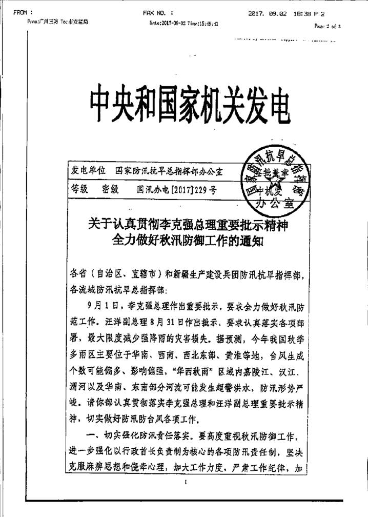 轉發國家防辦關于認真貫徹李克強總理重要批示精神,全力做好秋汛防御工作的通知,請各單位貫徹落實