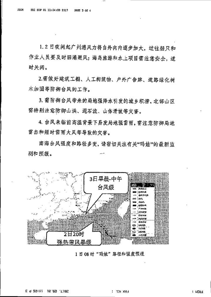 轉發第16號臺風“瑪娃”將影響我市,3-4日有大到暴雨局部大暴雨,請各單位做好防御工作
