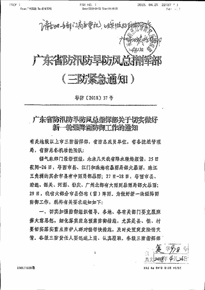轉(zhuǎn)發(fā)廣東省防汛防旱防風(fēng)總指揮部關(guān)于切實(shí)做好新一輪強(qiáng)降雨防御工作的通知