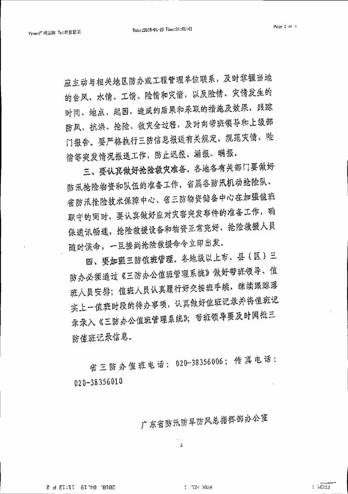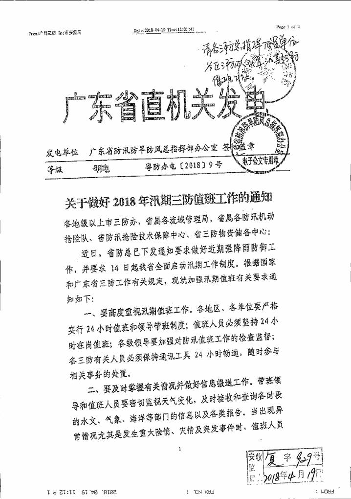 轉發廣東省防汛防旱防風總指揮部辦公室關于做好2018年汛期三防值班工作的通知,請各有關單位按要求做好值班值守