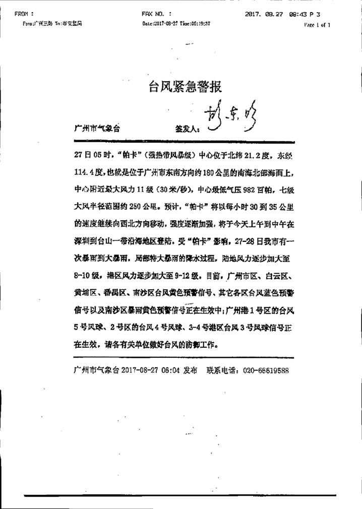 轉(zhuǎn)發(fā)市氣象臺臺風(fēng)緊急警報